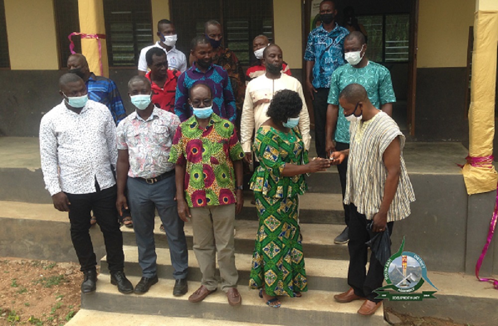 Presenting the keys to the Headmaster of New Kaira D/A Basic School, the Head master express his in depth gratitude to GETfund, DCE and the contractor and also asked the DCE to assist them with chairs, tables and computers for their ICT lab.
