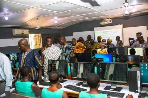Maxim Nyansa Foundation, in partnership with Macina Foundation sponsored by organizations from the Netherlands on Thursday , 29th February 2024, handed over a full furnished ICT lab with 50 Desktop computers, a projector and flat screen to Peki Senior High Technical School and PESCO also have their shares of the same number of equipments.