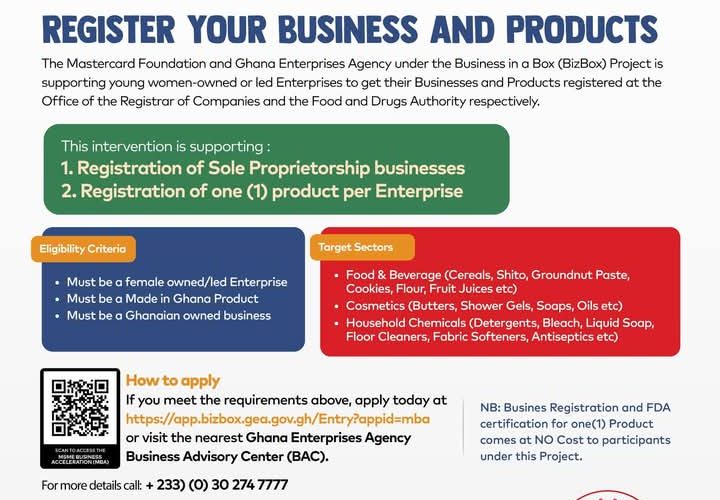 The Business In A Box (BizBox) Project is a partnership between the Mastercard Foundation and Ghana