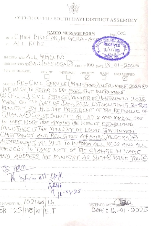 Rename of the Ministry of local government ministry chieftaincy and religious affairs