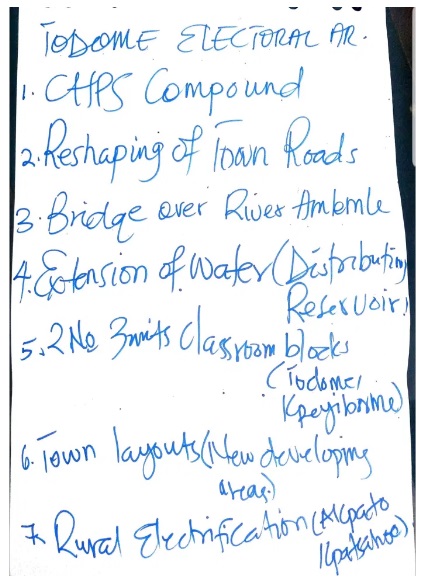 The engagement with the first two electoral areas was quite interactive as representatives of the various unit committees were present, Traditional rulers, Herdsmen, Opinion Leaders and noble group or associations relevant to the development of the various electoral areas were represented. On the other hand the technical support team for the plan preparation represented the Assembly for the engagement. Tools such as the pairwise ranking were used to prioritize the needs of the people.